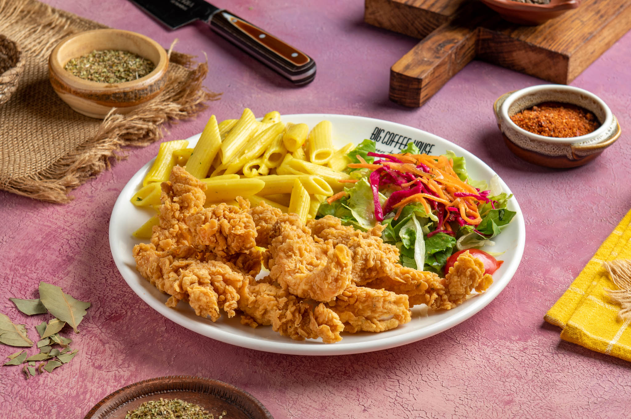 5 Adet Çıtır Tavuk + 2 Adet Nugget + Özel Soslu Makarna + Akdeniz Yeşillikleri + Seçeceğiniz Yan Ürün