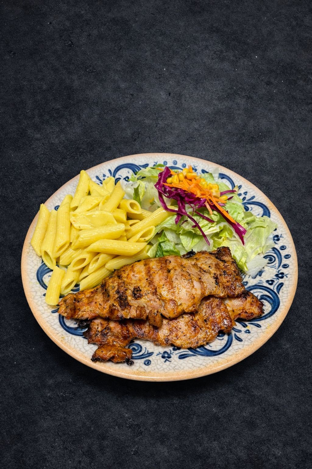 Izgara Tavuk Pirzola, Özel Soslu Makarna, Akdeniz Yeşillikleri
