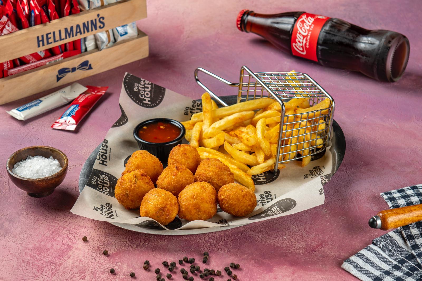 8 Adet Kızarmış Mac & Cheese Topları, Sweet Chili Sos, Patates Kızartması İle