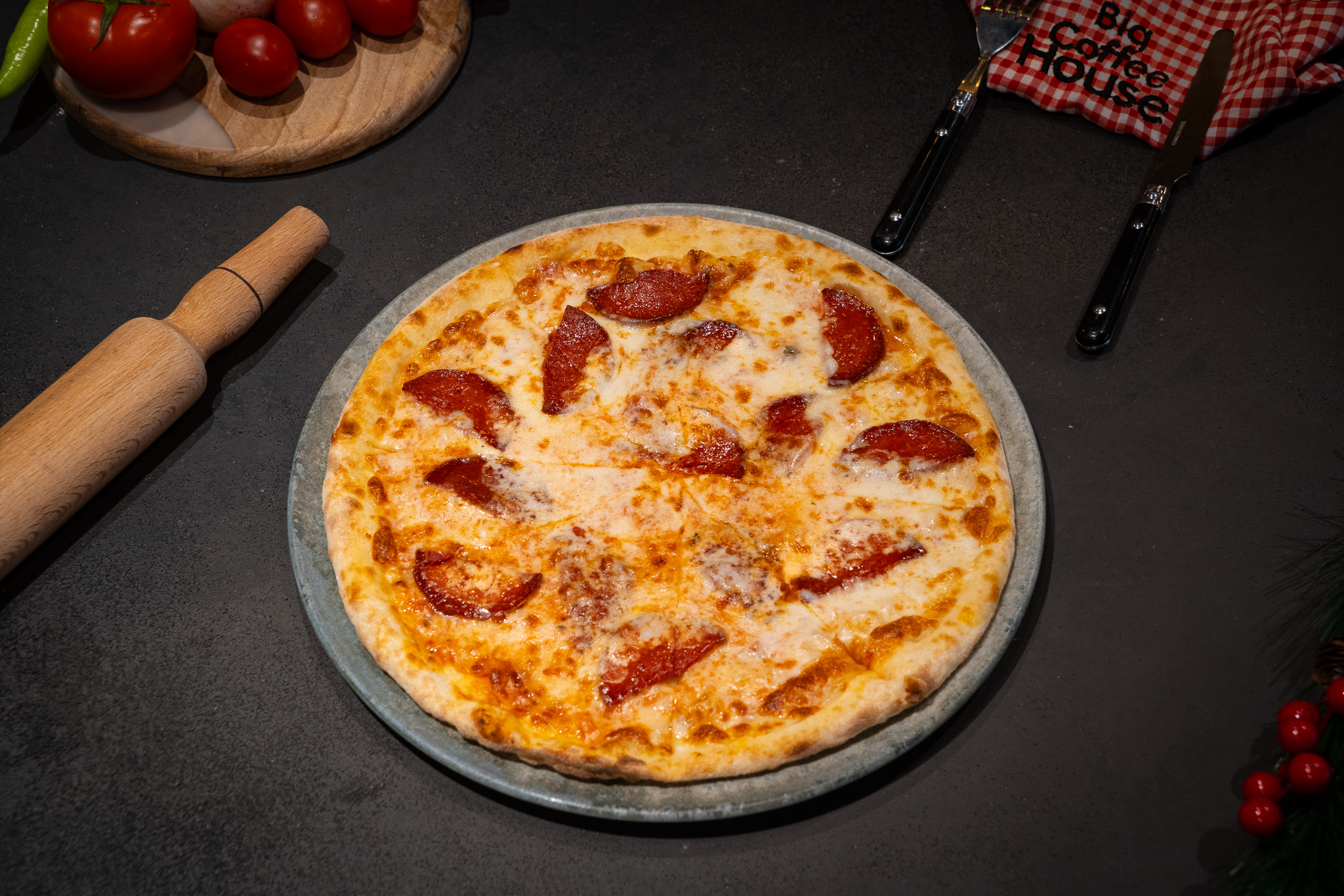 Mozzeralla Peyniri, Ev Yapımı Özel Domates Sos, Pepperoni Sucuk