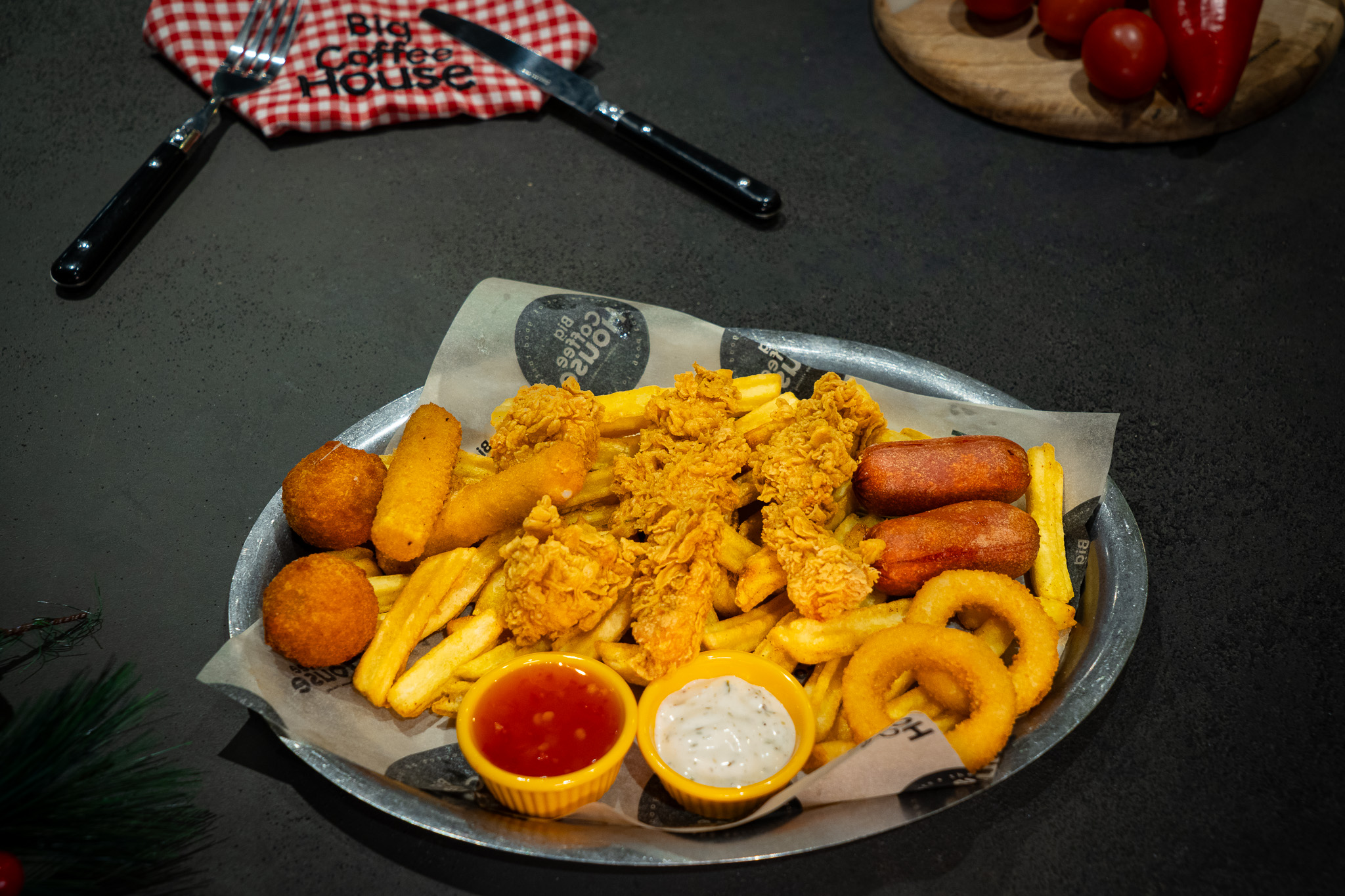 Çıtır Tavuk + 2 Adet Çıtır Nugget + Sosis + Mozzarella Sticks + Soğan Halkası + Sigara Böreği + Patates Kızartması + Sezar Sos + Seçeceğiniz Yan Ürün