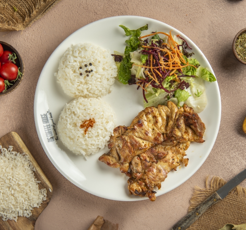 300 gr. Izgara Tavuk Pirzola + Akdeniz Yeşilliği + Pirinç Pilavı